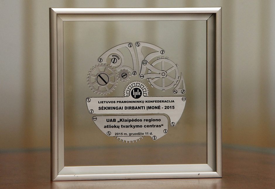 Lietuvos pramonininkų konfederacijos konkurse „Sėkmingai dirbanti įmonė 2015” vidutinių įmonių kategorijoje nugalėtoju tapo UAB Klaipėdos regiono atliekų tvarkymo centras (KRATC).