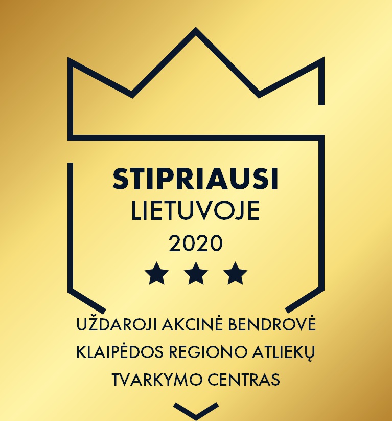 Jau 10 metų Baltijos šalių finansinį įmonių patikimumą analizuojantis ir reitinguojantis kredito biuras Creditinfo, UAB Klaipėdos regiono atliekų tvarkymo centrui (KRATC) suteikė sertifikatą „STIPRIAUSI LIETUVOJE 2020“.